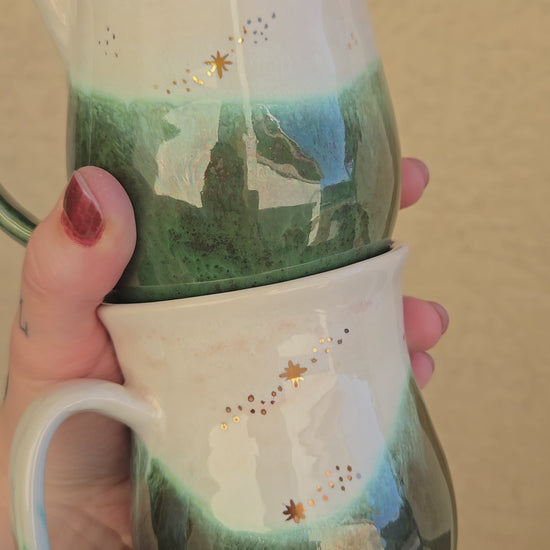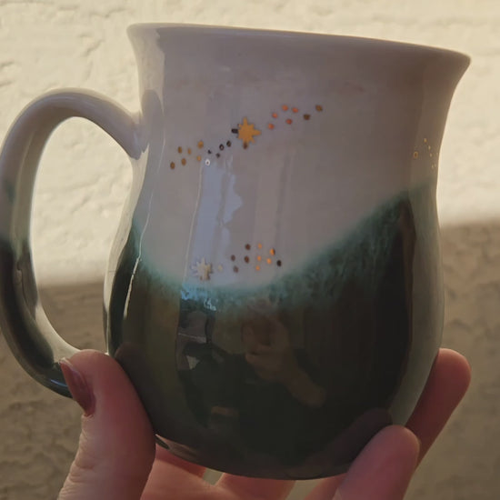 Medium handmade ceramic mug decorated with gold stars.