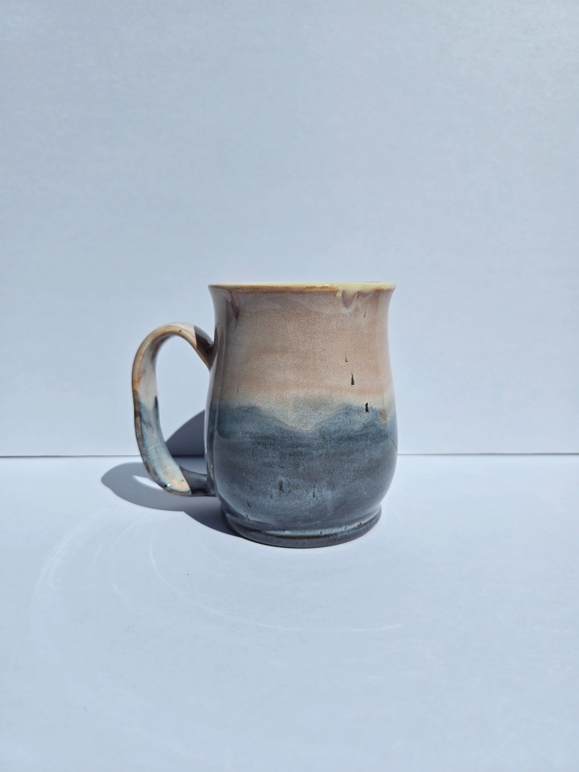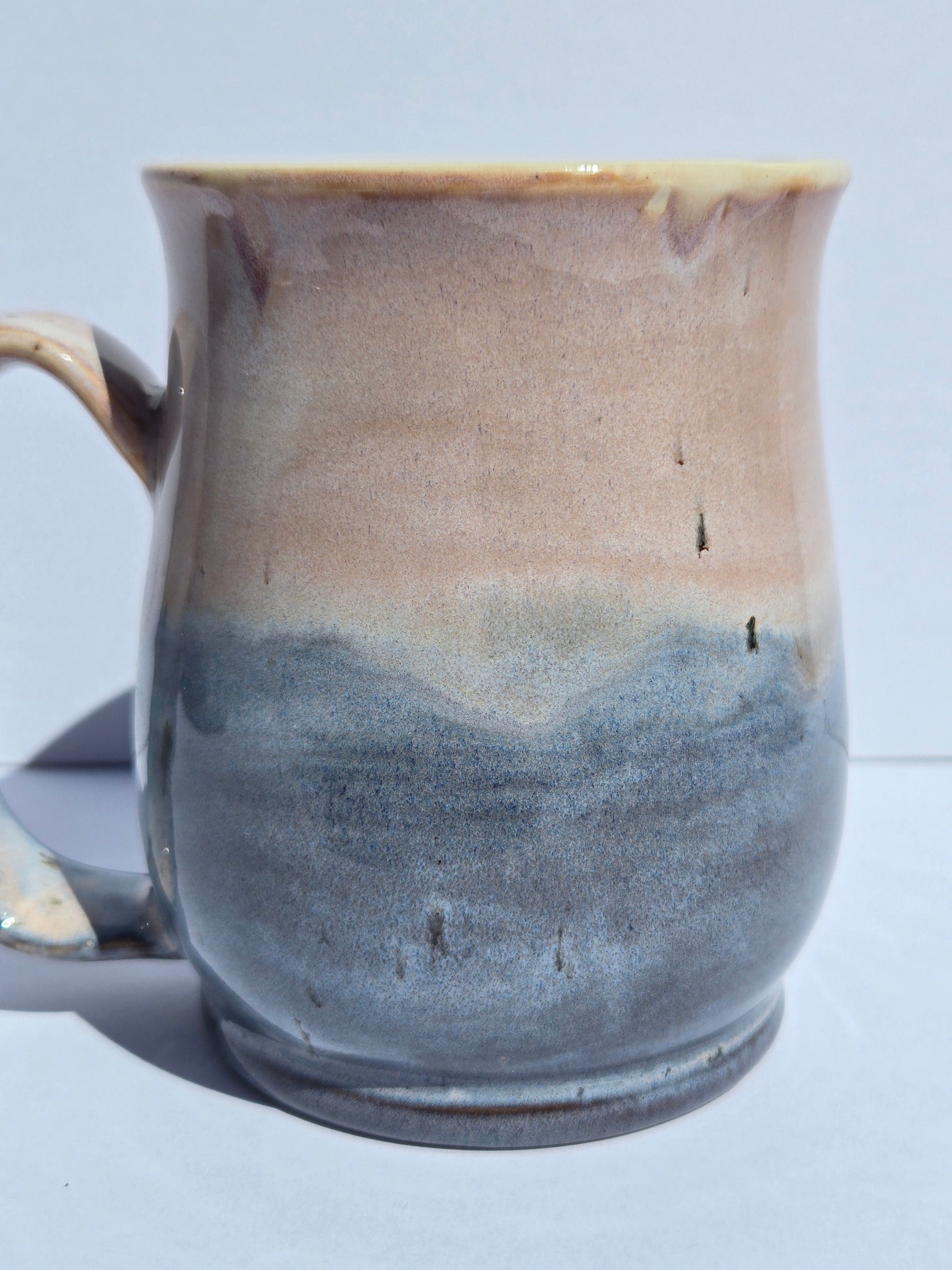 Crafted on the wheel and finished in our Sweater Weather glaze, this mug captures the feeling of crisp mornings and warm hands wrapped around something comforting. Standing 5 inches tall and holding approximately 12–14 fl oz, it's the perfect companion for your favorite coffee, tea, or cocoa.