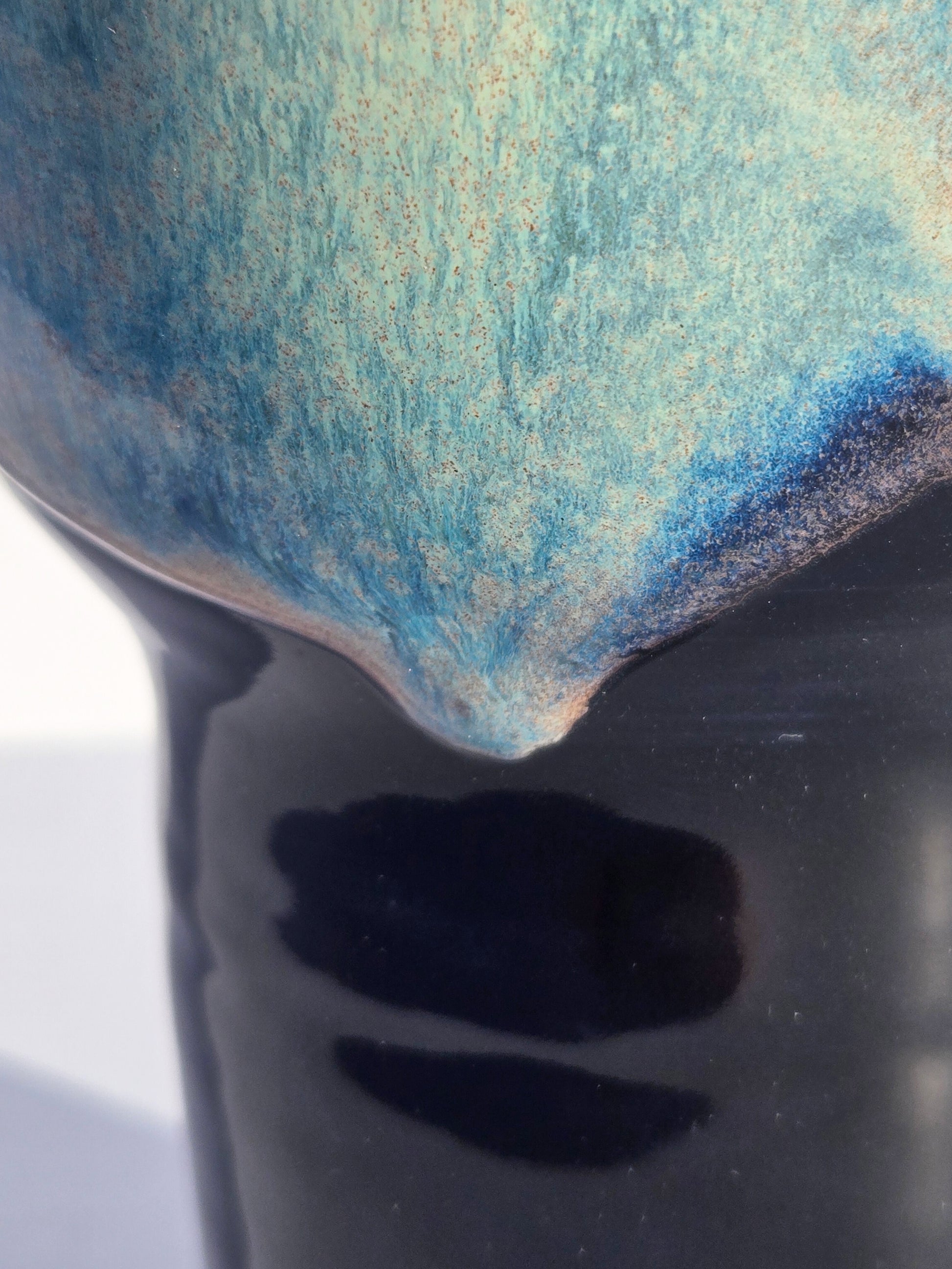 Sip in style with this handmade ceramic travel tumbler, glazed in a beautiful blend of soft teal blue and black. Generously sized to hold approximately 20 fl oz, it’s perfect for keeping you fueled on the go.