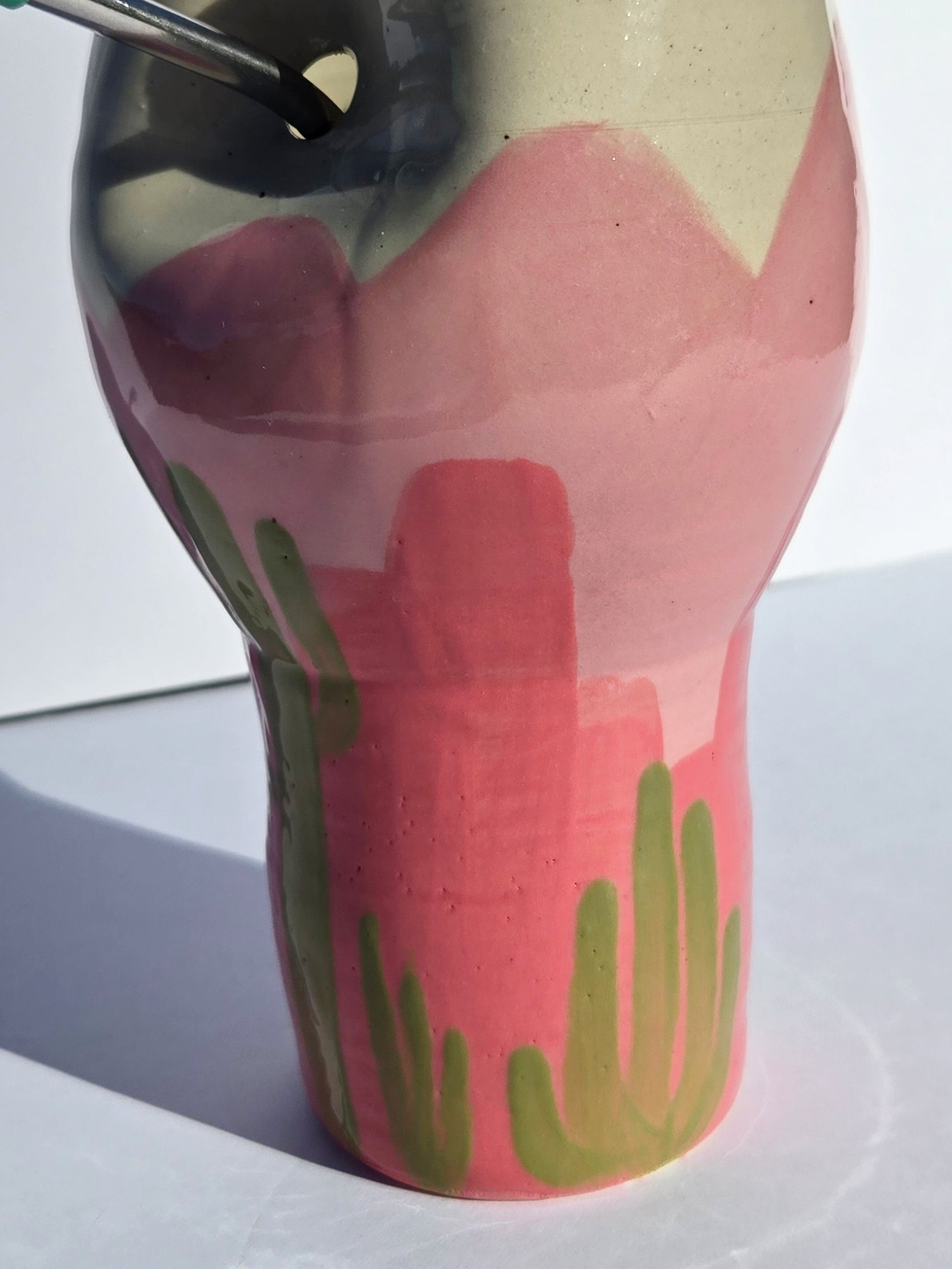This wheel-thrown travel mug, holding approximately 16–24 fl oz, is adorned with our hand-painted in desert dusk which is our interpretation of the Sonoran Desert landscape. Complete with a reusable metal straw, it’s made for sipping beauty on the go. Handmade, functional, and inspired by the wild stillness of the desert. It is dishwasher safe.
